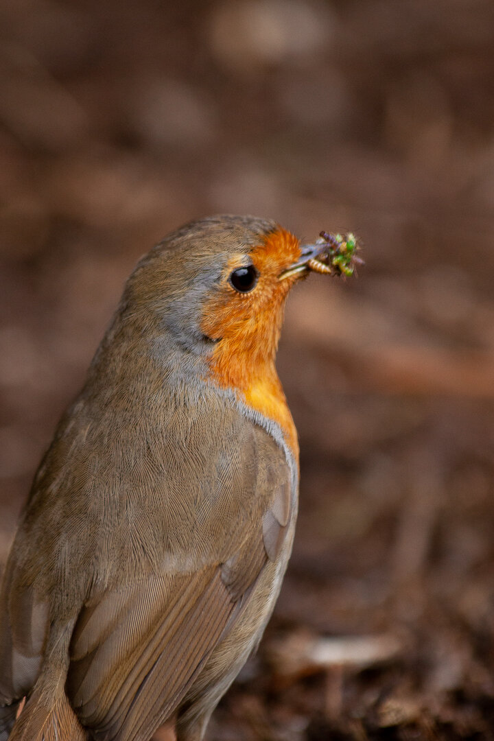 What do baby robins eat. Robins dont have a red breast in juvenile plumage - this helps protect them from territorial attacks from their own parents. The segments should fit easily into the robins mouth.